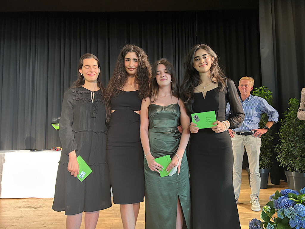 Neben Auszeichnungen für herausragende Ergebnisse in den Bereichen MINT, Chemie und Physik wurden auch die Schüler*innen mit den besten Abi-Noten und vier Schülerinnen, die ihre Karriere in einer Internationalen Förderklasse begonnen haben, geehrt. Sie bekamen von Herrn Dr. Buck und Herrn Schürholz als Vertreter des Fördervereins Preise für besondere Leistungen überreicht.