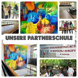 Neben der feierlichen Unterzeichnung der Erklärung zur Fortsetzung der Zusammenarbeit durch Frau Rudowitz und den Olsztyner Stadtpräsidenen war ein Höhepunkt unter vielen weiteren Höhepunkten die festliche Einweihung des am Lyzeum Nr. 5 unter Anleitung des Künstlers Bartek Swiatecki entstandenen Kunstwerks, das ebenso beeindruckend wie das MPG-Graffiti ist. Im Anschluss an die Enthüllung des Kunstwerks, das an der MPG-Partnerschule ein Treppenhaus ziert, wurde ein weiterer Kunstgenuss geboten, nämlich ein grandios inszeniertes und exklusiv für die Delegationen aufgeführtes Theaterstück über Kopernikus‘ Leben und Wirken. Am Folgetag waren Frau Özen und Herr Alt erneut zu Gast am Lyzeum, dieses Mal stand allerdings Arbeit auf dem Stundenplan, da die Reise natürlich auch genutzt werden sollte, um vor Ort mit der Schulleiterin und den dortigen Koordinatorinnen die wesentlichen Eckpunkte für den Austausch im kommenden Schuljahr zu besprechen. Zunächst bekamen Frau Özen und Herr Alt bei einem Rundgang verschiedene Räumlichkeiten gezeigt und konnten sich dabei einen guten Eindruck von der exzellenten Ausstattung der Schule verschaffen. Besonders fasziniert waren beide von den begrünten Naturwisschenschaftsräumen, in denen die Schüler:innen in Anwesenheit von lebenden Tieren lernen, die in verschiedenen Terrarien und kleinen Gehegen untergebracht sind. Erfreulicherweise wurde die in einem der Bioräume beheimatete Boa lediglich um Frau Özens Hals gelegt, da Herr Alt selbst rechtzeitig das Weite suchen konnte. Interessant war außerdem, dass die verschiedenen Sportfelder in das Schulgebäude integriert und unmittelbar von einer Empore aus einsehbar sind. Überraschend war schließlich noch die Präsentation des schuleigenen Schießstandes, wobei die Sportwaffen selbstverständlich nicht getestet wurden.