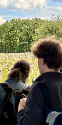 Am 13.06.2024 besuchten wir Schülerinnen und Schüler des Leistungskurses Geschichte von Frau Rühl bzw. des Grundkurses von Herrn Osterholt die Gedenkstätte Kamp Vught in den Niederlanden. Hier nahmen wir an einer Führung über das noch gebliebene Gelände teil, und konnten einen Eindruck von den Lebensbedingungen und auch den begangenen Verbrechen der Nationalsozialisten gewinnen. Im Anschluss haben wir noch eine kleine Wanderung zu einem Denkmal der hingerichteten Widerstandskämpfer im Kamp Vught gemacht. Danach ging es nach Ysselsteyn, dem größten Soldatenfriedhof in den Niederlanden, mit insgesamt 32.500 Einzelgräbern von Kriegstoten aus dem Ersten und vor allem dem Zweiten Weltkrieg, die sich über ein riesiges Gelände erstrecken. Auch dort konnten wir mithilfe einer Führung diesen Friedhof besichtigen, und noch einmal die Dimensionen und Ausmaße der beiden Weltkriege erleben.
