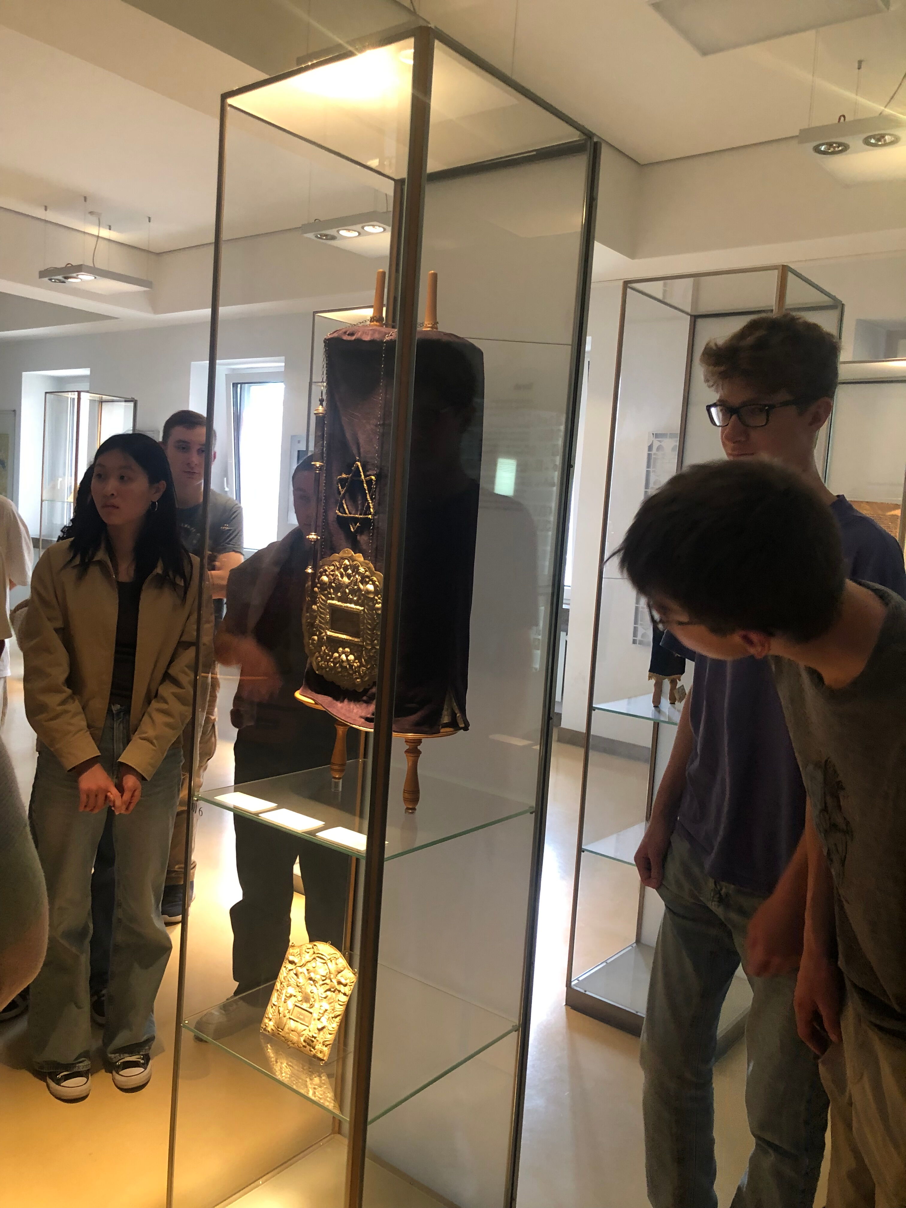 Auch gab es einfallsreiche Ideen, die uns die jüdische Religion und Rituale näherbrachten, wie zum Beispiel ein Fließband, das die jüdischen Essensgesetze erklärte. Wenn man die Treppen zur dritten Etage hochstieg, konnte man Bilder von berühmten jüdischen Menschen betrachten. Zum Schluss posierten wir noch ein Gruppenfoto und machten uns dann auf den Heimweg. Insgesamt war es ein sehr schöner und interessanter Ausflug, bei dem wir viel lernen konnten.