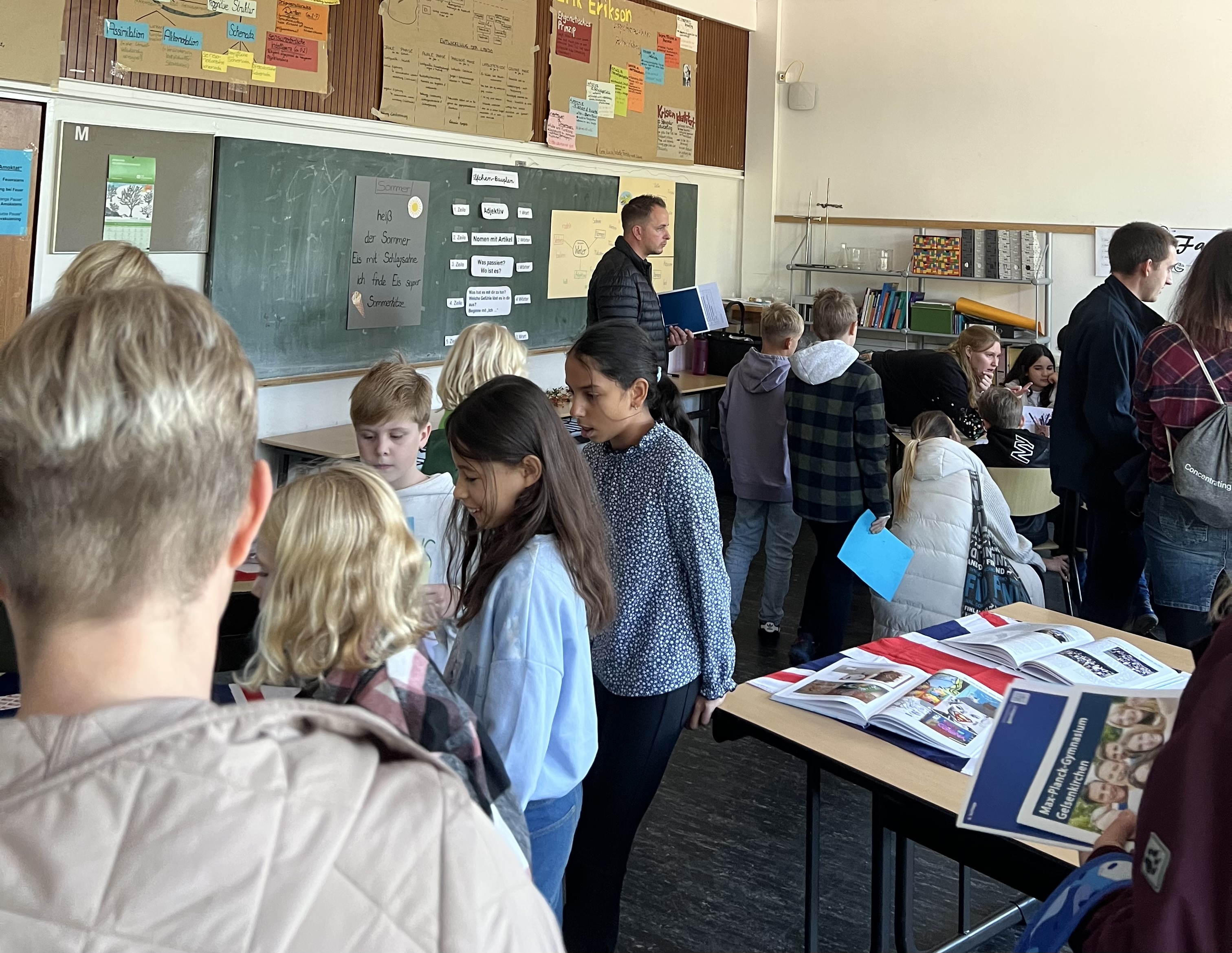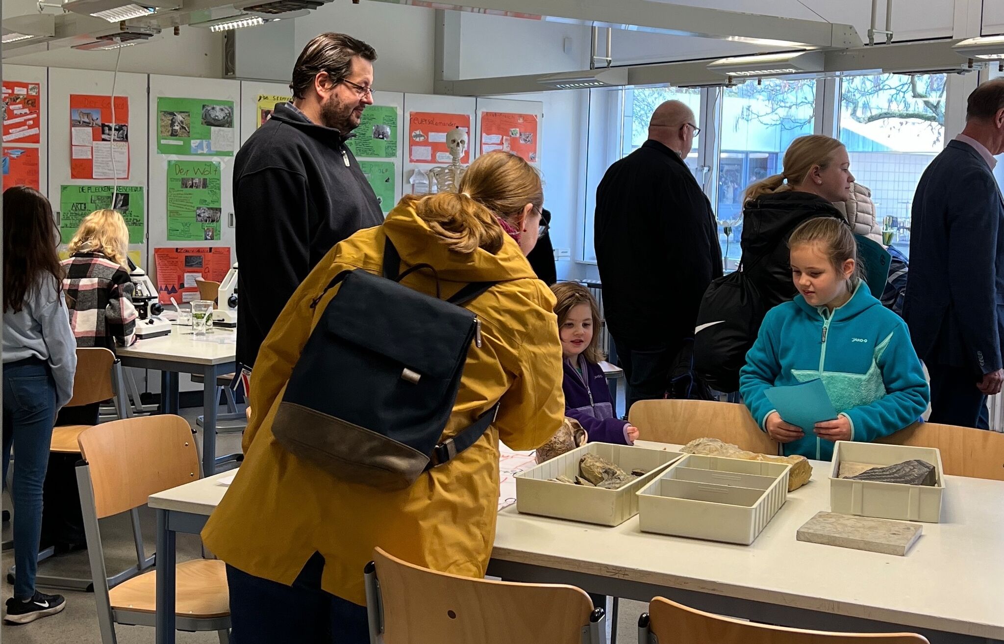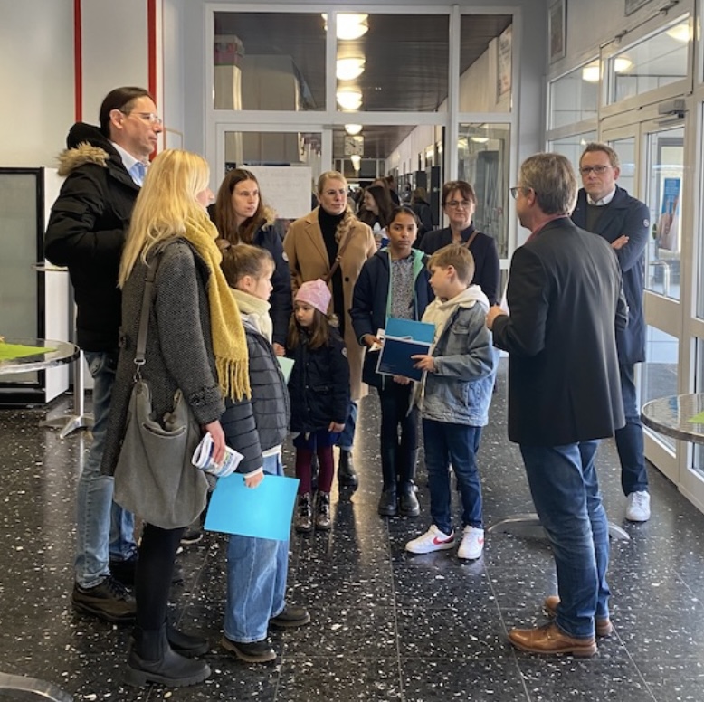 Die Grundschüler*innen und ihre Eltern hatten die Gelegenheit, die Schule bei Führungen in kleinen Gruppen kennenzulernen und viele Fragen zu stellen. Von diesen Möglichkeiten wurde reichlich Gebrauch gemacht. Unterstützt wurden die Lehrer*innen dabei von Schüler*innen der Oberstufe und Vertreter*innen der Elternschaft.