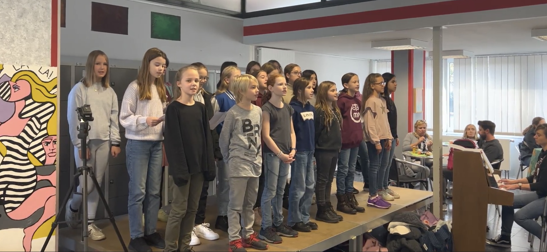 Es gab natürlich auch einen Einblick in unsere AGs wie LEGO Mindstorms, Imkern, Streitschlichtung oder dem Schulsanitätsdienst. Der Unterstufenchor präsentierte in der Cafeteria einige Kostproben seines Repertoires und die Schüler*innen des Literaturkurses und des Faches Darstellendes Spiel zeigten kleine Auszüge aus dem aktuellen Unterricht.
