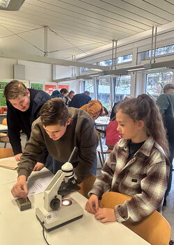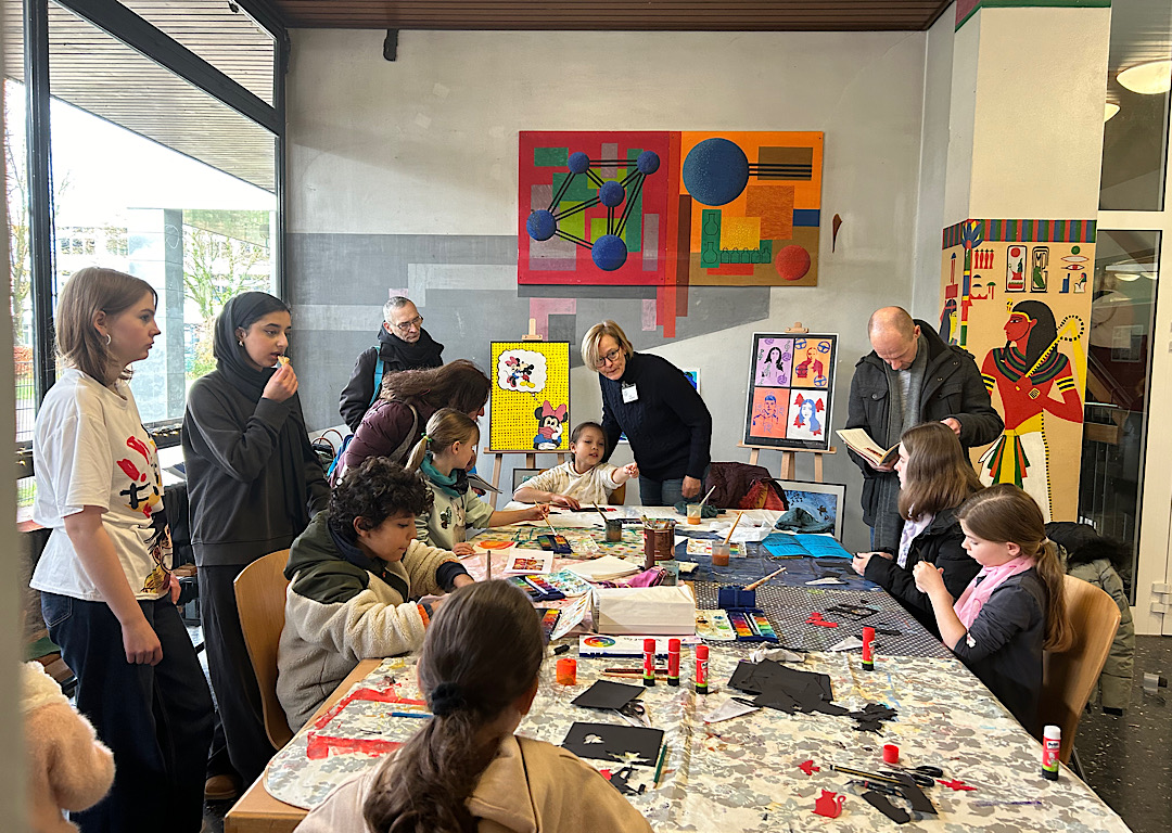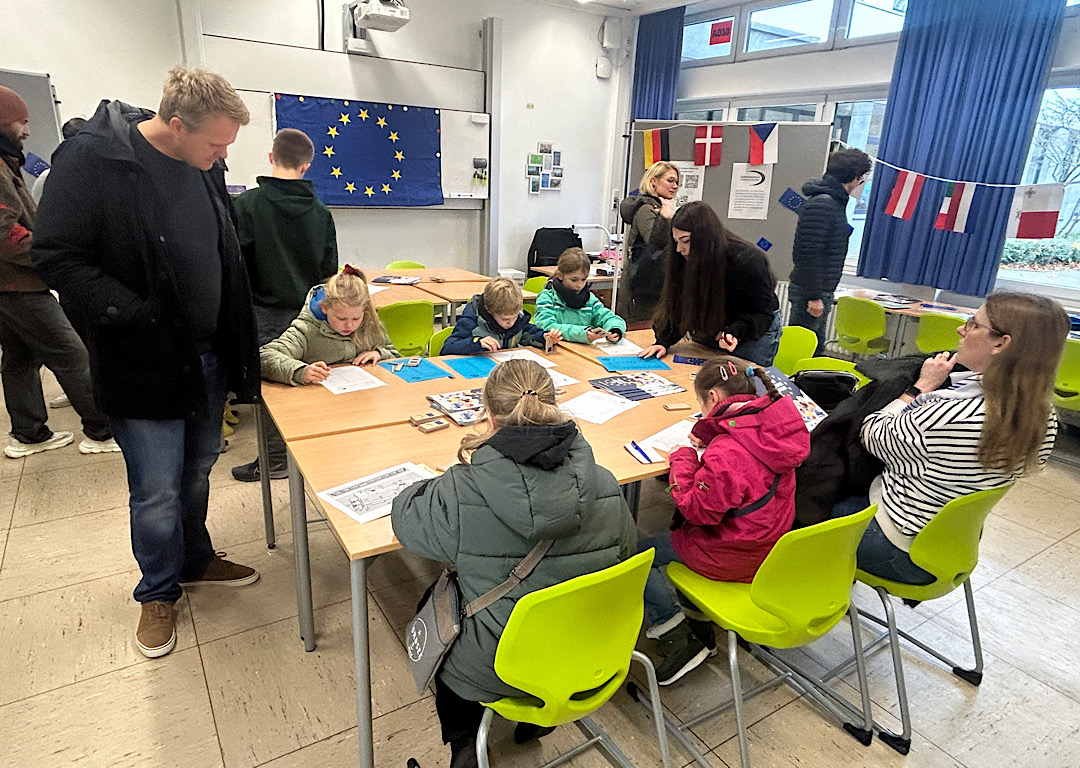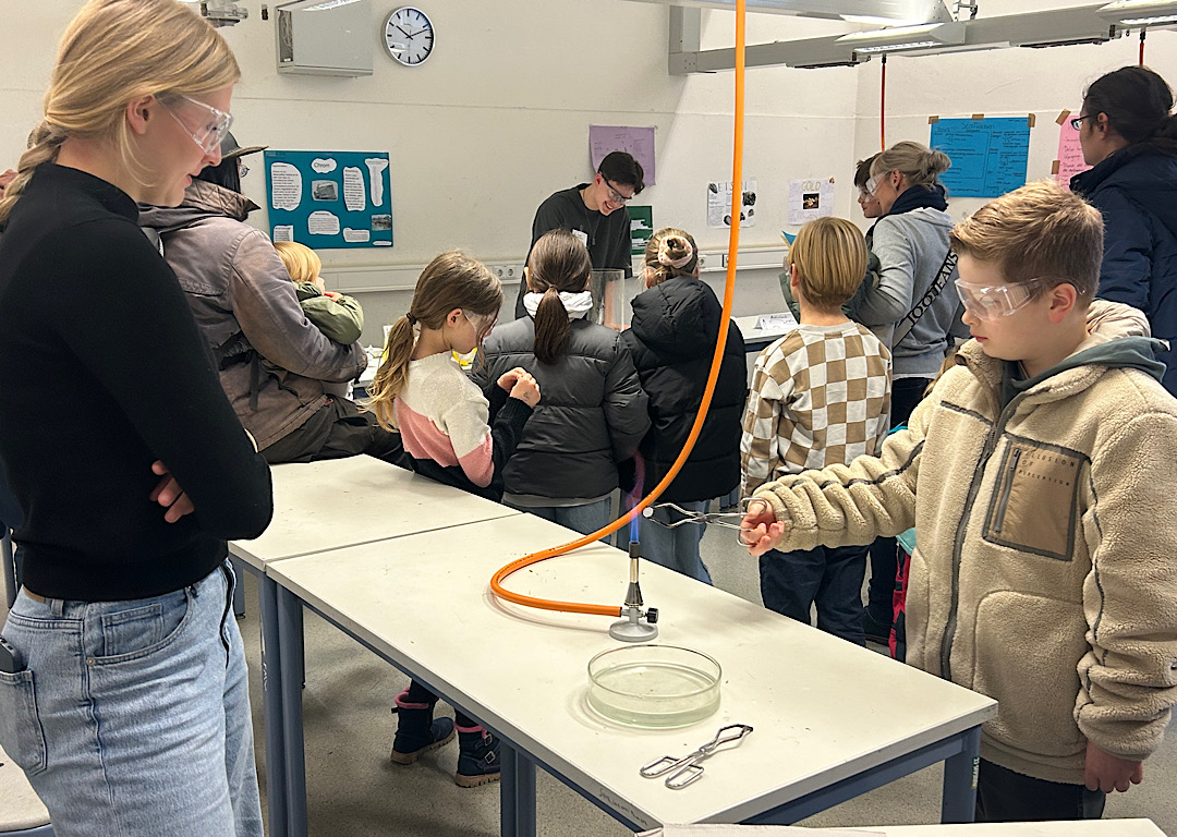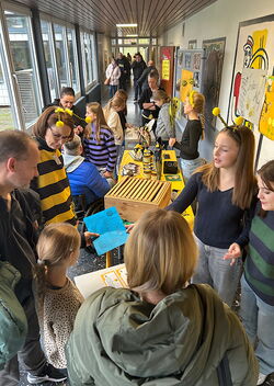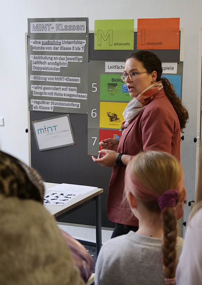 In den Gängen und Fluren der Schule präsentierten sich die einzelnen Fachschaften und AGs. Es gab unter anderem Mikrokospierexperimente in der Biologie, spannende Versuche im Fachraum Physik und chemische Reaktionen zu bestaunen. Das Europaprojekt stellte sich vor, ebenso die Fächer Praktische Philosophie und Psychologie. Bei den Kunstlehrkräften konnten die Kinder herbstliche Grußkarten basteln und bemalen, während in der Sporthalle ein Hindernisparcours, Hockeyspiele und Basketball, unterstützt durch die Sporthelfer, angeboten wurden. Zusätzlich präsentierten sich die Imker-AG, die Brettspiele-AG, die Fächer Darstellendes Spiel und Literatur und die Schülervertretung und das Beratungsteam. Natürlich durften auch die Sprachen Englisch, Französisch, Latein und Italienisch nicht fehlen.
