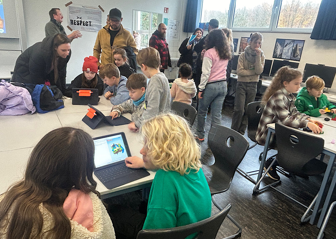 Schon um kurz vor 9 Uhr versammelten sich die ersten neugierigen Kinder mit ihren Eltern vor dem Eingang des Max-Planck-Gymnasiums. Dort wurden sie herzlich von unserem Schulleitungsteam, Frau Scharf und Herrn Feldhaus, und der Erprobungsstufenkoordinatorin Frau Heitkamp empfangen. Ausgestattet mit einer Informationsbroschüre, einem Übersichtsplan und einer Stempelkarte konnten sich die Viertklässlerinnen und Viertklässler auf den Weg machen, um die zahlreichen Mitmachstationen auf dem gesamten Schulgelände zu besuchen und Stempel zu sammeln. Für eine volle Karte gab es am Ende einige schöne Preise. In den Klassenräumen der fünften Klassen konnten sich die Eltern ausführlich in Gesprächen mit Lehrkräften und MPG-Eltern über unsere Schule informieren.