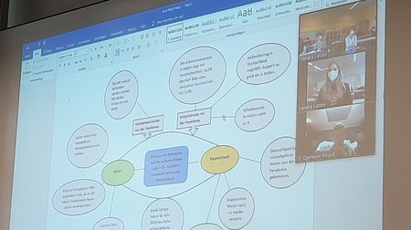 Den Abschluss des einwöchigen Projekts bildete der Schwerpunkt „Gesellschaft“, in welchem der Studierende sich, per Videokonferenz zugeschaltet, gemeinsam mit dem Kurs zu den Folgen der Corona-Pandemie in anderen Lebensbereichen wie Bildung und Freizeit austauschte. Zuletzt hat Damiano den Schülerinnen und Schülern noch ein paar Tipps für ihre weitere Zukunft mitgegeben und von seinen Erfahrungen über die Auswahl des „richtigen“ Studienfachs sowie der „Wunschuniversität“ berichtet.