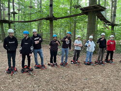 Am Montag, den 30 Mai, fand eine Exkursion der drei internationalen Förderklassen zum Kletterpark in Haltern am See statt. Nach entsprechender Einweisung durch die Teamleiter vor Ort, ging es dann endlich los: Mit Helm und Gurtzeug ausgestattet, erhielten alle Schülerinnen und Schüler die Möglichkeit, sich verschiedenen Parcours zu widmen, Herausforderungen zu meistern und sich auszuprobieren. Je nach Belieben konnte zwischen drei Schwierigkeits- und Höhengraden ausgewählt werden. Der Spaß, die Freude am Klettern sowie Teambuilding standen dabei im Vordergrund.