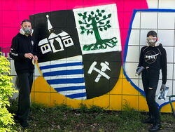Mit diesem Projekt wird die seit nunmehr 30 Jahren bestehende Städtepartnerschaft zwischen Olsztyn in Polen und Gelsenkirchen gefeiert und deutlich sichtbar gemacht. Nach dem ersten Tag sind mit den Wappen beider Städte und der Schalke-Arena bereits die ersten beindruckenden Motive gesprayt worden.