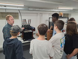 Die Schülerinnen und Schüler der AG hatten außerdem die spannende Gelegenheit, direkt von Firmenvertretern zu erfahren, wie Informatik ihren Arbeitsalltag prägt. Bei Besuchen vor Ort konnten sie hautnah erleben, wie Daten in einer großen Versicherung verarbeitet werden oder wie 3D-Druckaufträge für zahlende Kunden, beispielsweise im Bereich der Prothetik, umgesetzt werden. Diese Einblicke zeigten eindrucksvoll, wie vielseitig und kreativ Informatik im Berufsleben eingesetzt wird. Zusätzlich hat die Westfälische Hochschule ein inspirierendes Programm für die AG zusammengestellt, das den Schülerinnen und Schülern die vielfältigen Möglichkeiten eines Studiums in diesem zukunftsträchtigen Bereich zeigt.