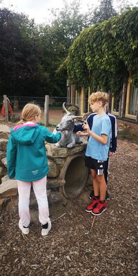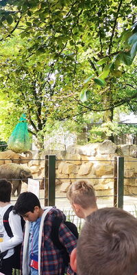 Am dritten Tag fuhren alle sechsten Klassen zusammen zum Zoo nach Osnabrück. Am Anfang erklärte die Zoomitarbeiterin uns die Regeln. Daraufhin nahmen alle Klassen an einer Führung durch den Zoo teil. Danach konnten wir noch weitere Tiere beobachten. Es gibt im Osnabrücker Zoo z.B. Seehunde, Pinguine oder Elefanten. Der Bär Harry ist ein Mischlingsbär: Seine Mutter ist ein Braunbär und sein Vater ein Eisbär. Solche Mischlingsbären gibt es nur ganz selten. Außerdem gibt es viele junge Tiere, z.B. Seehunde, die lernten, auf Menschen zu hören. Wir lernten an diesem Tag alle etwas.