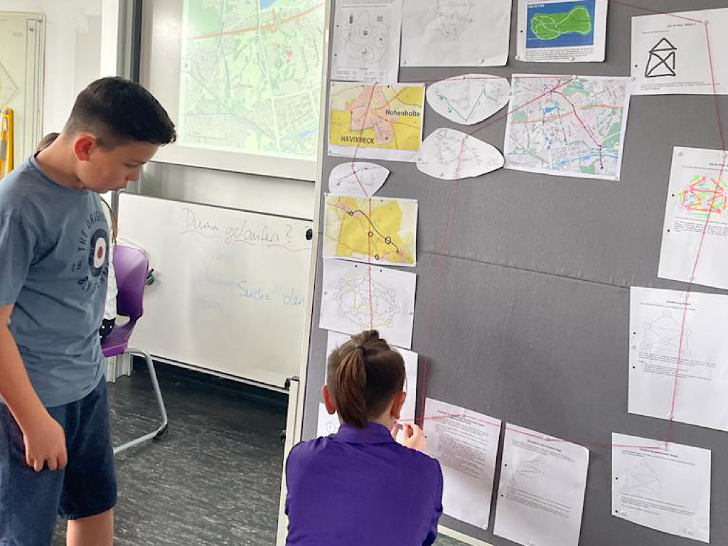 Frau Finke, Frau Holz und Herr Stein beschäftigten sich im Rahmen des Projektes „Alles geheim? Macht nix!“ mit Kryptologie, der Wissenschaft vom Erstellen und Knacken von Codes. Herr Merge und Herr Stoppel führten den Workshop „Unendlich viel auf einem Tisch“ durch, der sich mit dem mathematisch spannenden Begriff der Unendlichkeit befassten. Die Gruppe von Herrn Hendler und Ex-Schüler Felix Lerner (Abitur 2021) setzte sich im Rahmen des Workshops „Spielstrategien“ mit immer komplexer werdenden Spielen auseinander, beginnend mit Tic Tac Toe (das sich komplett analysieren ließ) über Vier gewinnt (schon komplexer) zu Schach (extrem komplex).