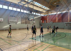Nachdem unsere Basketballerinnen sich die Stadtmeisterschaft sichern konnten, stand nun die nächste Runde der Basketball-Meisterschaften an. In der Zwischenrunde der Bezirksmeisterschaft fuhren unsere Korbjägerinnen hochmotiviert nach Borken, um die Qualifikation für die Endrunde auszuspielen. Als der Schiedsrichter den Hochball um 10 Uhr warf, merkte man, dass unsere Starting Five gut eingespielt ist: unseren Mädels gelang ein 10:0-Lauf. Zum Ende des ersten Viertels wurde der Fuß etwas vom Gaspedal genommen, so dass sich die Borkenerinnen etwas heran kämpfen konnten. Mit 14:10 ging es in die Viertelpause. Im zweiten Viertel errichtete unsere Mannschaft ein defensives Bollwerk und ließ im gesamten Viertel Punkte zu, während man offensiv nach allen Belieben punktete. Unsere Nika, die nach langer Verletzungspause gerade rechtzeitig fit wurde, lief in gewohnter Manier einen Fastbreak nach dem anderen, während Alina, Lena und Yara in der Defensive mit vielen Steals und Blocks die Gegner zur Verzweiflung brachten. Und während es so gut lief, kam dann der große Schock im späten zweiten Viertel: Carla knickte um und musste vom Feld getragen werden. An dieser Stelle ein großes Dankeschön an Herrn Kühne vom AvD, der nahezu in Baywatch-Manier sofort zu Carla sprintete und medizinische Ersthilfe leistete. Nach dieser Unterbrechung ging es dann mit dem Spiel weiter, zur Halbzeit führte unser Team bereits mit 30:14. In der zweiten Halbzeit machte unser Team dort weiter, wo es in der ersten aufgehört hatte. Die Defense stand, die Offense lief wie ein Schweizer Uhrwerk. Zum Ende des Viertels wunderte sich Herr Rosic nicht schlecht, als Carla spielbereit nach einer Einwechslung fragte. Obwohl Herr Rosic seine Zweifel hatte, wechselte er Carla ein und sie hüpfte wieder wie ein junges Reh übers Feld, als ob nie etwas gewesen wäre. Nach dem dritten Viertel setzten wir uns noch weiter ab, am Ende stand es 46:22 für uns, so dass man hier schon von einer Entscheidung sprechen konnte. Dies wiederum hinderte aber unsere Mädels nicht daran, mal das Tempo zu drosseln. Eher im Gegenteil: Anna scorte schneller, als man zusehen konnte, und stand am Ende bei 30 Punkten. Im letzten Viertel wechselten die Mädels sich dann häufig gegenseitig aus, damit jede auf möglichst viel Spielzeit kommen konnte. Mit 58:28 und einer wahnsinnig tollen Teamleistung qualifizieren sich unsere Basketballerinnen nun also für die Endrunde in Münster. Das Bezirksfinale findet bereits am 5. Februar statt.