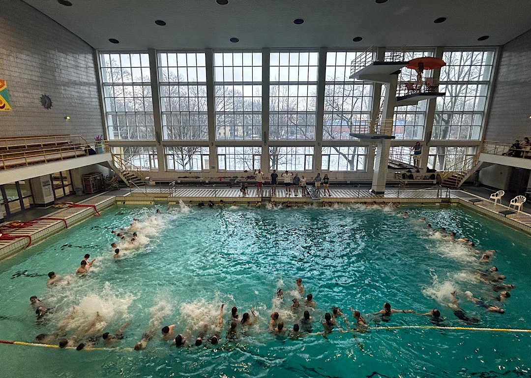 Nachdem sie die letzten Disziplinen für Silber und Gold gemacht haben, wurde noch ein Gruppenfoto gemacht, bei dem sich alle ins Wasser begaben und in einem großen Kreis mit den Beinen gestrampelt haben. Die letzte Disziplin für das Goldabzeichen war anschließend das gegenseitige Schieben und Ziehen. Direkt danach folgte mit der Schwimmstaffel das Highlight des Tages: Aus jeder Klasse traten 10 Schüler:innen gegeneinander an. Die Klassen haben sich in 5er-Gruppen aufgeteilt und an beiden Seiten des Schwimmbeckens aufgestellt. Die ersten Schwimmer der jeweiligen Gruppen sprangen ins Wasser und kurz darauf ertönte der Startpfiff. Nach ein paar Bahnen führte die Klasse 7c, jedoch holte die 7d gewaltig auf. Am Ende konnte die 7c ihren Vorsprung ins Ziel bringen. Mit dem Sieg der 7c endetet dann auch das Schwimmfest 2024.