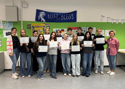 Die Fachschaft Französisch beglückwünscht alle 16 Schülerinnen und Schüler, die im Jahr 2025 ihr DELF-Diplom bestanden haben! Im Mai entschieden sich 16 Schülerinnen und Schüler, ihre Französischkenntnisse in den Prüfungen des Institut français unter Beweis zu stellen. Dabei lösten sie Aufgaben in den Kompetenzen Hören, Lesen, Schreiben und Sprechen in den Niveaustufen A1 (Klasse 7), A2 (Klasse 8 und 9). Folgende Schülerinnen und Schüler haben das Zertifikat erhalten: Darin Abdelalim, Ayoub Albarouni, Markus Brünenberg, Julian Driemel, Amelie Ebener, Sophia Frajs, Mia Heil, Lyon Jurczys, Lara Kalfhaus, Ben Littek, Mia Sarholz, Hannah Sasko, Eliz Tekin, Darleen Trippe, Lisa Wachs, Leni Wolf.