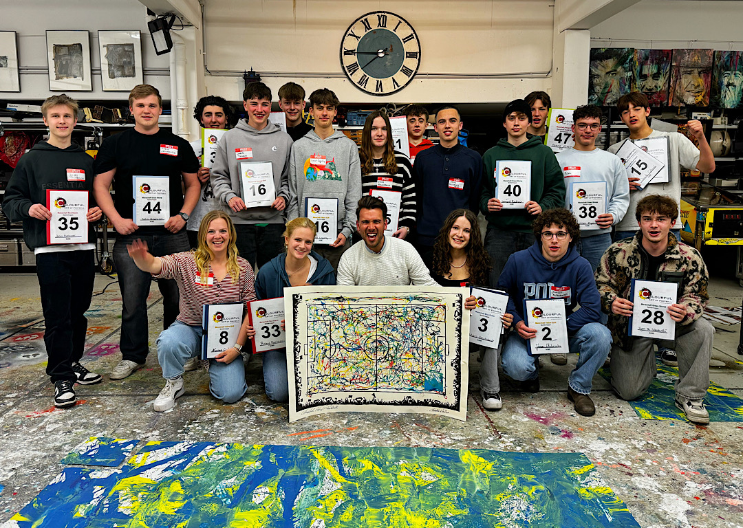 Am 05.05.24 wird der Gelsenkirchener Künstler Christian Nienhaus mit insgesamt 52 Spielerinnen und Spielern in der Arena auf Schalke das größte Bild der Welt malen und unsere Schülerinnen und Schüler sind mit dabei, unter anderem Mara Neubauer (Q1) und Fynn Sobulewski (Q2).