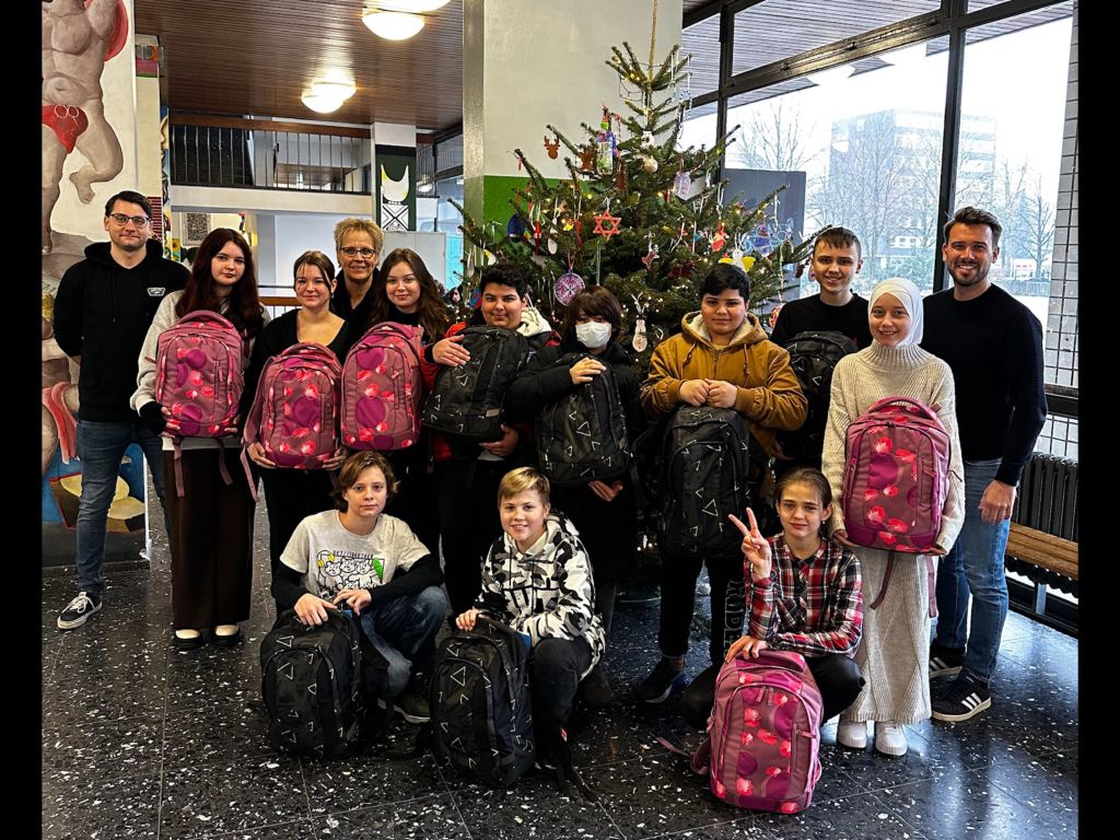 Mit großer Freude verteilten unsere IFÖ-Lehrer Herr Fischer, Herr Rosic und Herr Walc erneut Schulranzen der Hilfsorganisation CARE an geflüchtete Kinder, die das Max-Planck-Gymnasium besuchen. Passend zur Weihnachtszeit wurden die neuen Schülerinnen und Schüler durch die CARE-Pakete mit Heften, Thermoskannen, vollen Etuis und Taschenrechner versorgt, um für den Start zum neuen Halbjahr gut ausgerüstet zu sein. Auch Schulleiterin Frau Scharf war bei der Übergabe der Schulranzen dabei: „Wir möchten den geflüchteten Kindern einen guten Start an unserer Schule ermöglichen. Ihnen soll es an nichts fehlen!“
