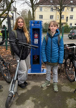 Die Schulgemeinschaft verdiente sich die Station durch ihre erfolgreiche Teilnahme am Stadtradeln. Die Station ergänzt die neu aufgestellten Fahrradständer und ist Teil unserer Mobilitätsoffensive „MPG goes by bike“.
