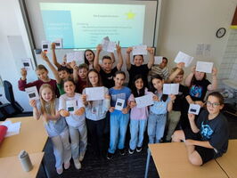 Es hat Spaß gemacht die Fotowandaktion zu Europa durchzuführen. Ungefähr 100 Fotos konnten wir am Nachmittag des Elternsprechtags machen. An den Reaktionen der Menschen hat man gemerkt, wie wichtig die Zukunft von Europa den meisten ist.
