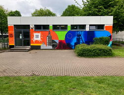 Anlässlich des 30-jährigen Jubiläums der Städtepartnerschaft zwischen der polnischen Stadt Olsztyn und Gelsenkirchen hat unsere Schule ein bisher einmaliges Projekt durchgeführt, bei dem mehr als 50 Jugendliche aus den Jahrgangsstufen 8 bis Q1 teilnahmen. Zusammen mit dem Gelsenkirchener Graffiti-Künstler Daniel Dinsing entstand in einer Woche an insgesamt drei Wänden unserer Sporthalle ein Graffiti-Kunstwerk, das unter anderem die Wappen der beiden Städte und einige Sehenswürdigkeiten wie beispielsweise die Schalke-Arena, die Rathäuser beider Städte und das Kopernikus-Denkmal in Olsztyn zeigt. Am 17.05.23 wurde das beeindruckende Ergebnis dieses Projekts offiziell vorgestellt. Weiterlesen..